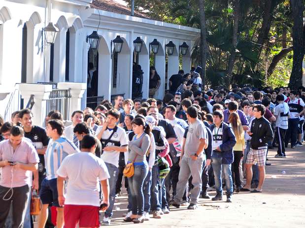 Os torcedores do Olimpia fazem uma fila enorme desde a noite de ontem, na sede do clube, para comprar os 32.212 ingressos disponíveis para o jogo da próxima quarta no Defensores Del Chaco. O preço dos ingressos varia entre 80 mil guaranis (aproximadamente R$ 40) e 400 mil (aproximadamente R$ 200).